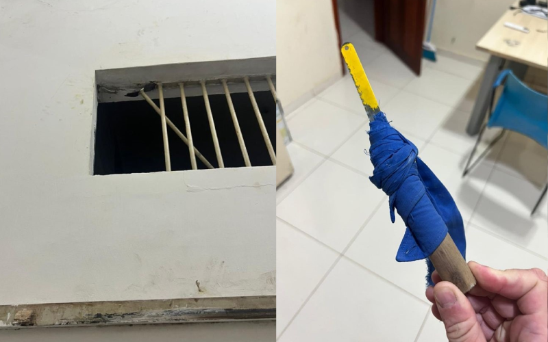 De acordo com a Polícia Civil, a fuga ocorreu na noite de sexta-feira (7). O suspeito teria serrado a grade da cela utilizando uma lâmina de serra e escapado do local juntamente com outro detento, identificado como Rafael Nascimento, conhecido pelo apelido de “Loirinho”.