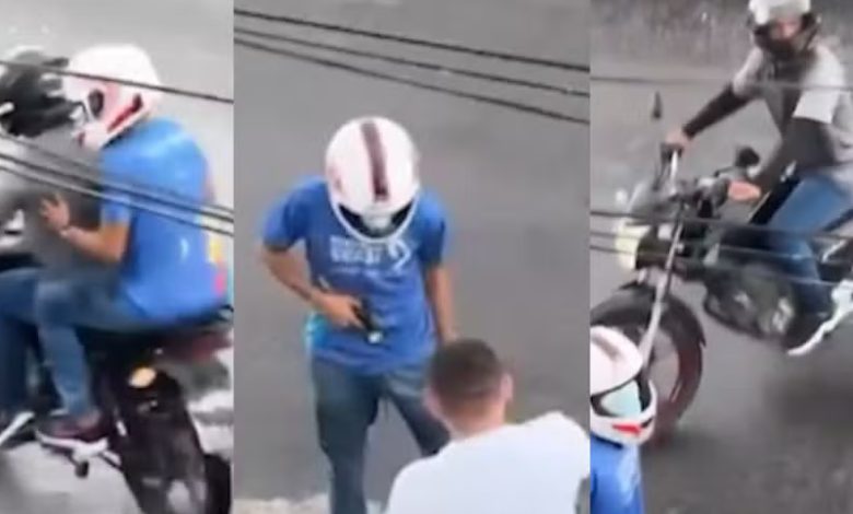 O caso ocorreu na última sexta-feira (13). Nas imagens é possível ver quando dois homens em um moto abordaram a vítima que andava na rua. Um dos criminosos desceu do veículo, apontou a arma para o homem e pegou os pertences dele. A dupla de assaltantes foge logo em seguida.