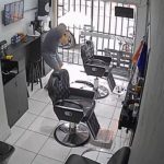 Imagens obtidas mostram o momento da ocorrência. O policial, vestindo camiseta preta, observa uma movimentação em frente ao estabelecimento. Do lado de fora, um homem com capacete de motociclista aborda uma pessoa próxima ao veículo. Em seguida, o agente efetua ao menos quatro disparos contra o suspeito.
