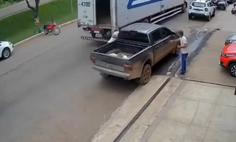 Um momento de rotina no trânsito terminou em susto e alerta em Parauapebas, no sudeste do Pará. Uma câmera de segurança flagrou o instante em que a porta aberta de um caminhão baú atinge um homem que se preparava para entrar em um veículo na última segunda-feira (26). As imagens, que circulam nas redes sociais, chamam atenção para riscos que muitas vezes passam despercebidos nas vias urbanas.