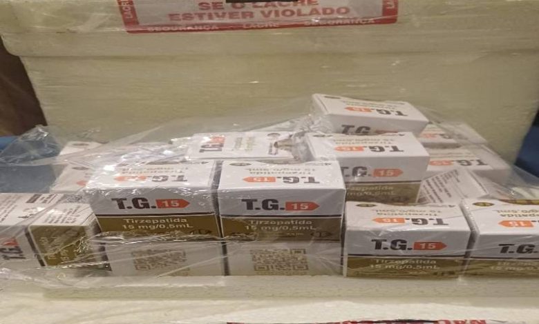 A abordagem ocorreu por volta das 22h40, quando agentes pararam um ônibus de viagem para inspeção de rotina. No bagageiro, os policiais localizaram uma caixa de papelão transportada como encomenda. Ao abrirem o pacote, identificaram ampolas de tirzepatida da marca TG, substância usada no controle de peso e que vem ganhando popularidade nas redes sociais e clínicas estéticas.