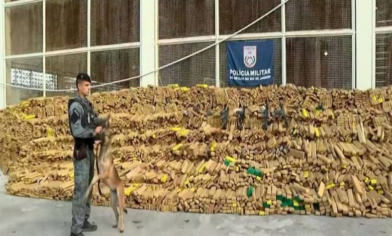 Quase 50 toneladas de maconha são encontradas em operação da PM na Maré com auxílio de cães farejadores