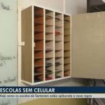 Em algumas unidades escolares da cidade, a regra é aplicada com o auxílio de armários específicos para o armazenamento dos aparelhos. Segundo a gestora escolar Francimar Farias, o investimento foi feito com recursos próprios da escola.