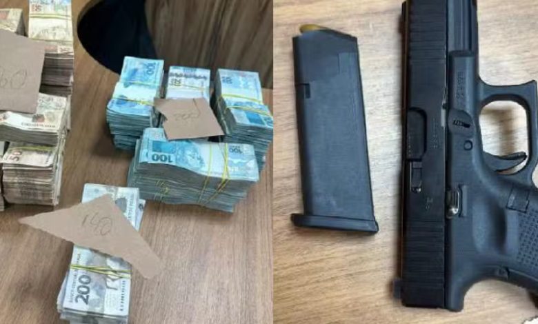 Os policiais federais apreenderam a mochila com o dinheiro, uma pistola, cinco celulares, e um veículo Land Rover. Perícias foram solicitadas.