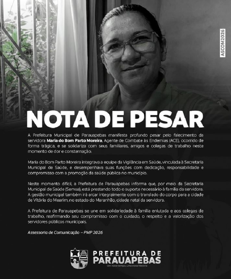 Em nota oficial, a Prefeitura de Parauapebas manifestou pesar pela morte da servidora, informou que está prestando assistência à família e que irá custear o translado do corpo para Vitória do Mearim, no Maranhão, cidade natal da vítima. A administração municipal também afirmou que seguirá colaborando com as investigações e reforçou o compromisso com a transparência e com o fortalecimento das medidas de segurança em áreas de obras e circulação de máquinas pesadas.