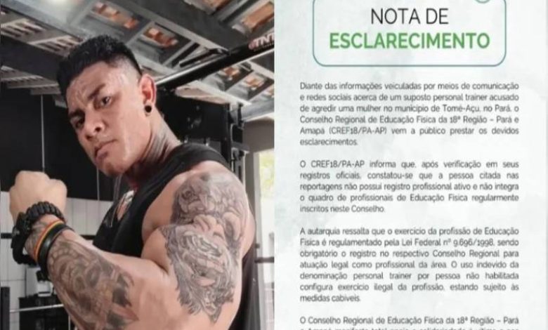 Em nota oficial, o CREF18 informou que realizou uma consulta nos registros e constatou que o investigado não possui cadastro ativo no órgão. “O CREF18/PA-AP informa que, após verificação em seus registros oficiais, constatou-se que a pessoa citada nas reportagens não possui registro profissional ativo e não integra o quadro de profissionais de Educação Física regularmente inscritos neste Conselho”, informou a entidade.
