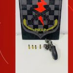 Com o homem, a polícia apreendeu uma arma de fogo, apresentada no Centro Integrado de Operações em Segurança Pública (Ciosp) do Pacoval.