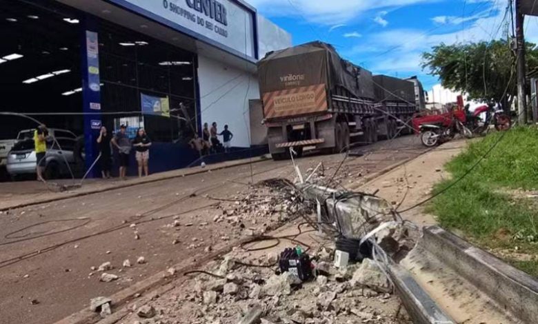 Uma carreta atingiu um poste de energia elétrica no bairro Interventoria, em Santarém, oeste do Pará, e provocou a interrupção do fornecimento em pelo menos cinco bairros na tarde desta quarta-feira (29). Apesar do susto, ninguém ficou ferido.