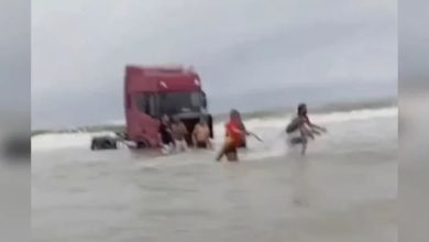 Um caminhão ficou atolado na faixa de areia da Praia do Atalaia, em Salinópolis, no nordeste do estado, durante a…