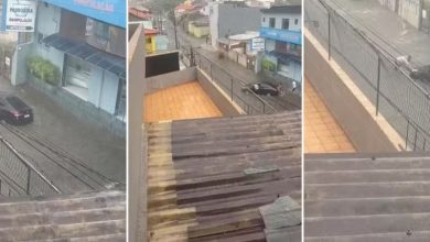 Mulher fica presa em carro durante enxurrada em Santo André e recebe ajuda de moradores