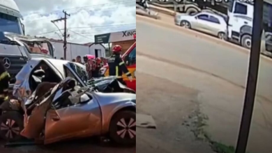 Uma pessoa morre e outras duas ficam feridas após carro ser prensado por caminhão, em Santarém (PA)