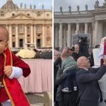 Matheus afirma que conseguir ser notado por Leão XIV foi “uma providência divina”, mas confessa que o fato de o bebê estar vestido como papa ajudou a chamar mais atenção do pontífice.