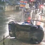Conforme as imagens, o acidente aconteceu às 2h43. Chovia fraco e o asfalto estava molhado no momento em que a viatura seguia pela Rua São Miguel, perto do Departamento de Repressão aos Crimes Patrimoniais (Depatri).